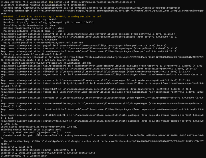 pip install git+https://github.com/huggingface/peft.git@13e53fc