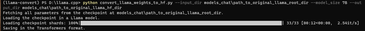 python convert_llama_weights_to_hf.py --input_dir models_chat\path_to_original_llama_root_dir --model_size 7B --output_dir models_chat\path_to_original_llama_hf_dir