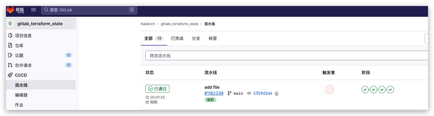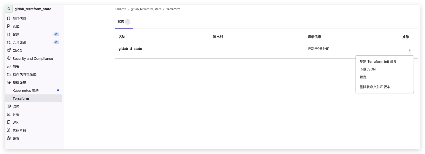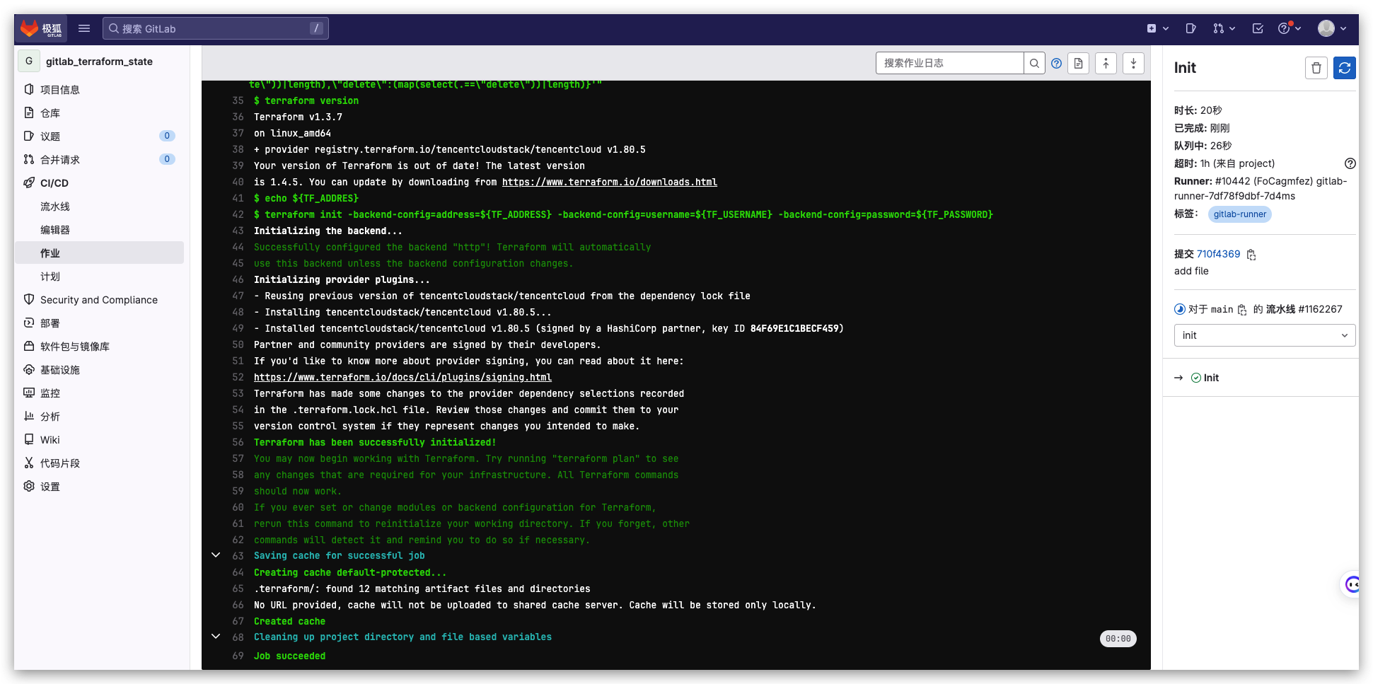 极狐Gitlab提供一个 Terraform HTTP 后端,以最少的配置安全地存储state文件。