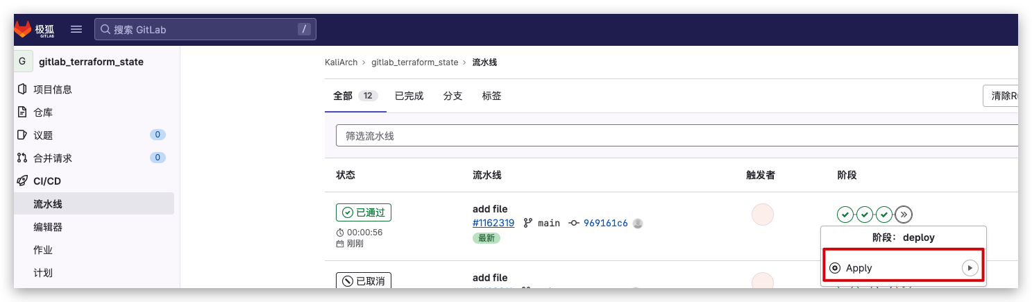 在项目内编写.gitlab-ci.yml在其stage中执行terraform 命令