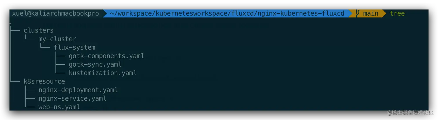 存储库包含nginx-deployment和nginx-service清单在workload目录中,web命名空间定义在namespaces目录中。