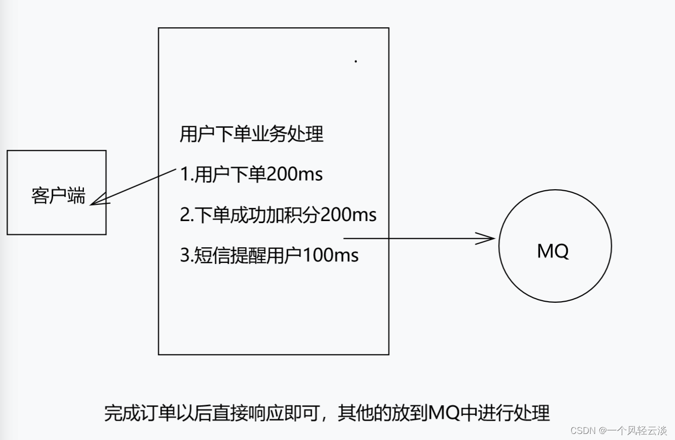 下订单---向MQ 发消息--》积分系统,手机短信系统接收消息