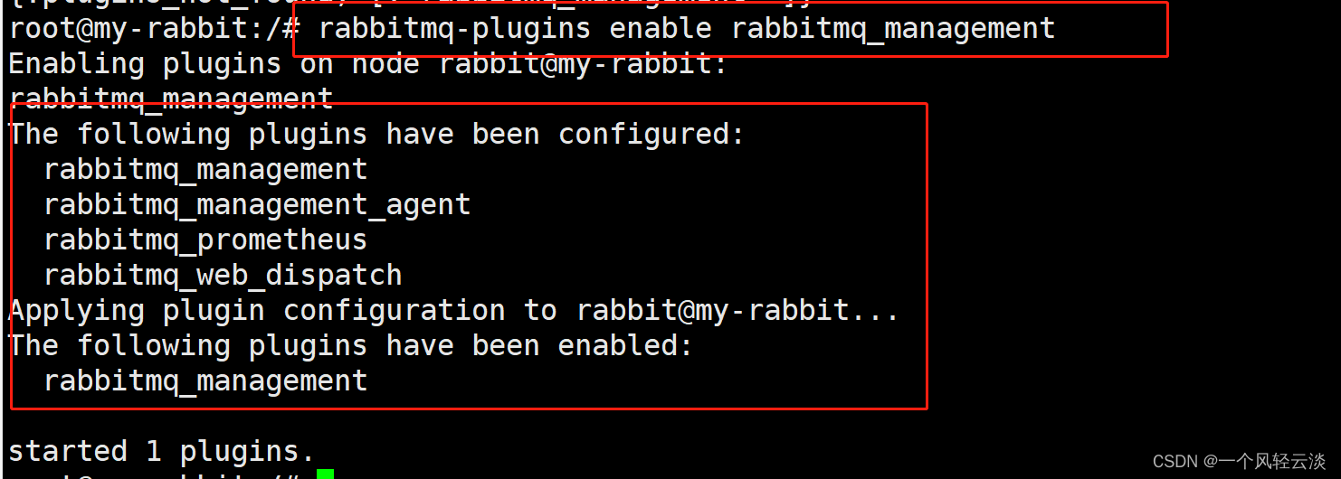 通过docker ps -a 查看部署的mq容器id,在通过 docker exec -it 容器id /bin/bash 进入容器内部在 运行:rabbitmq-plugins enable rabbitmq_management