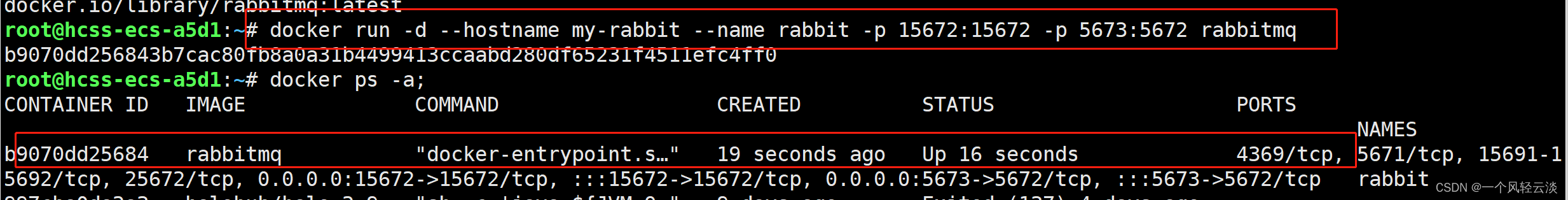 -p 5673:5672解释:-p 外网端口:Docker的内部端口 ,你们可以改成自己的外网端口号,我这里映射的外网端口是5673那么程序连接端口就是用5673