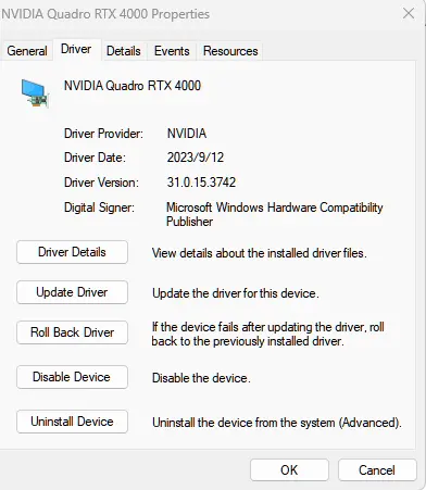 我笔记本电脑的显卡是 NVIDIA Quadro RTX 4000: