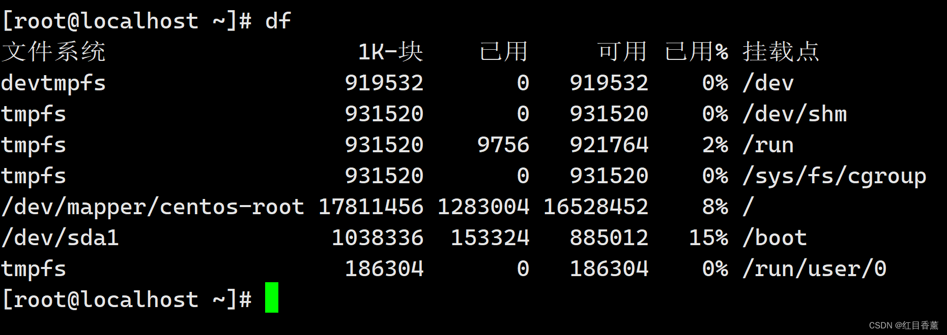 df命令有一些常用的参数,可以按需使用。下面是一些常见的df命令参数及其功能: