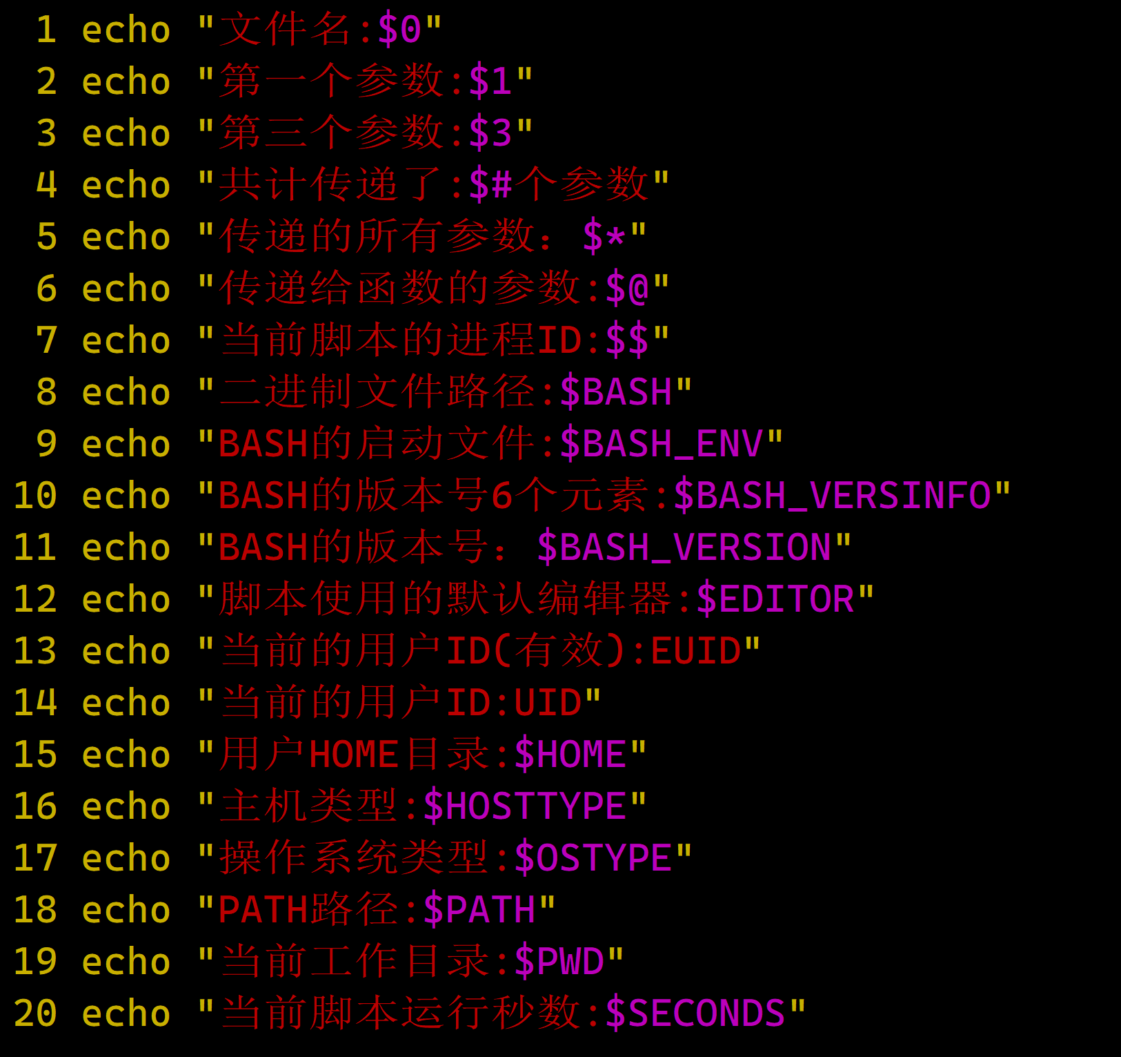 在Shell编程中,系统给定的变量(也称为预定义变量)是由系统预设的,用于提供有关脚本运行的环境和状态的信息。这些变量通常不需要用户定义或修改,可以直接在脚本中使用。