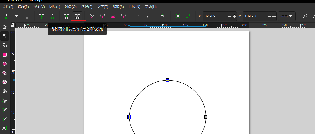 转换为路径后点击节点选择工具,选择你想要删除的路径上的节点(按住shift多选),点击“移除两个非端点之间路径”