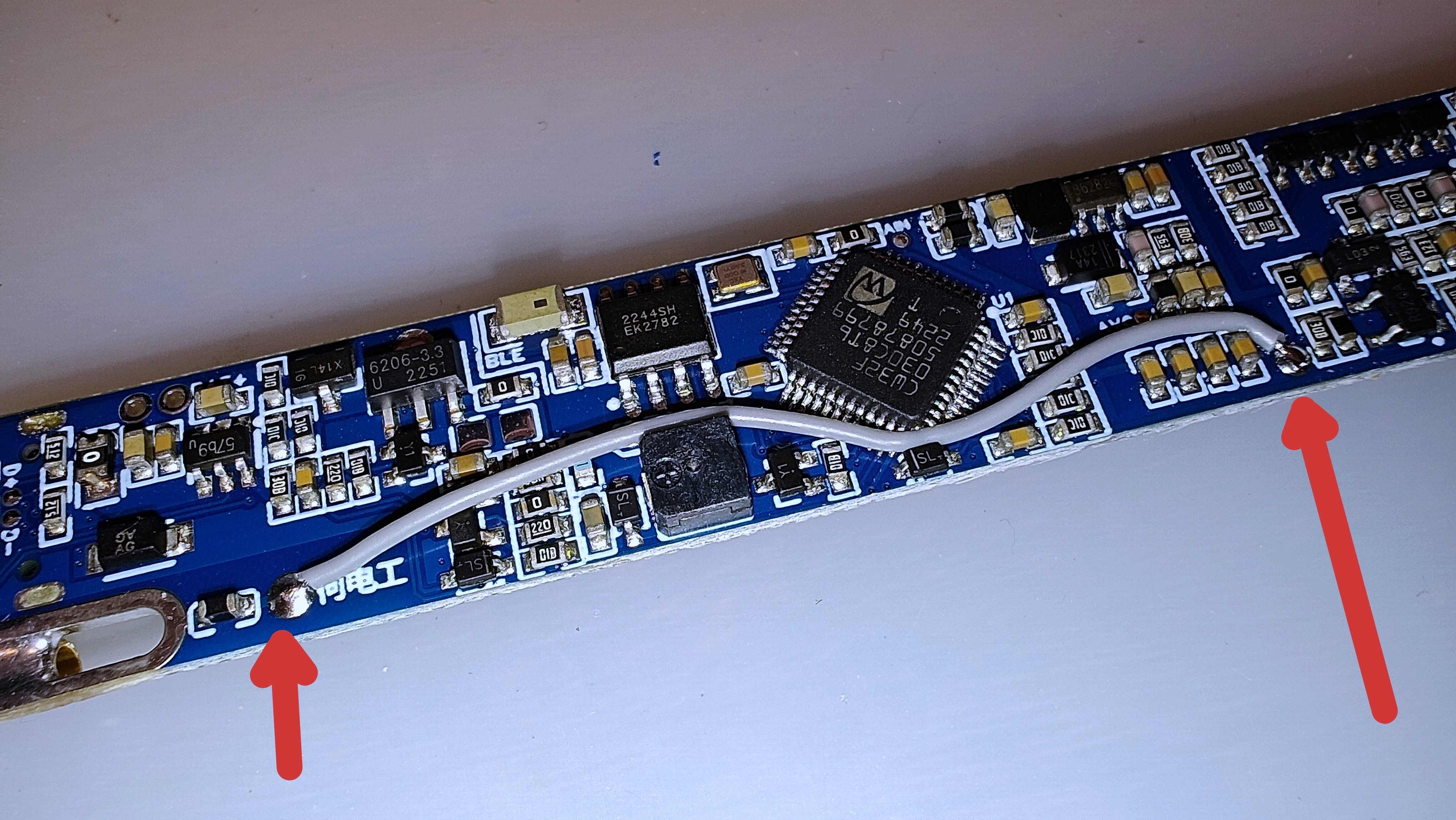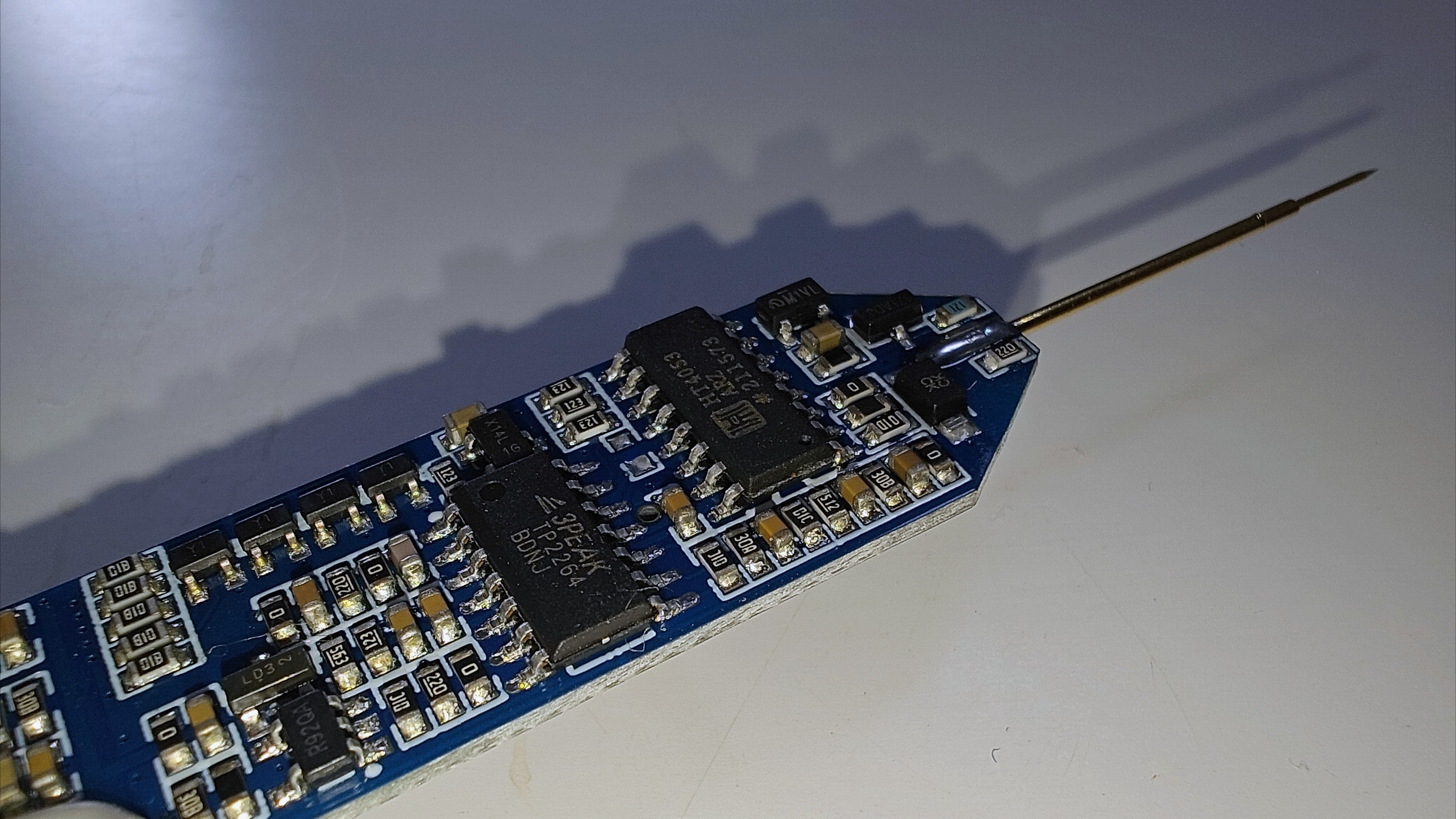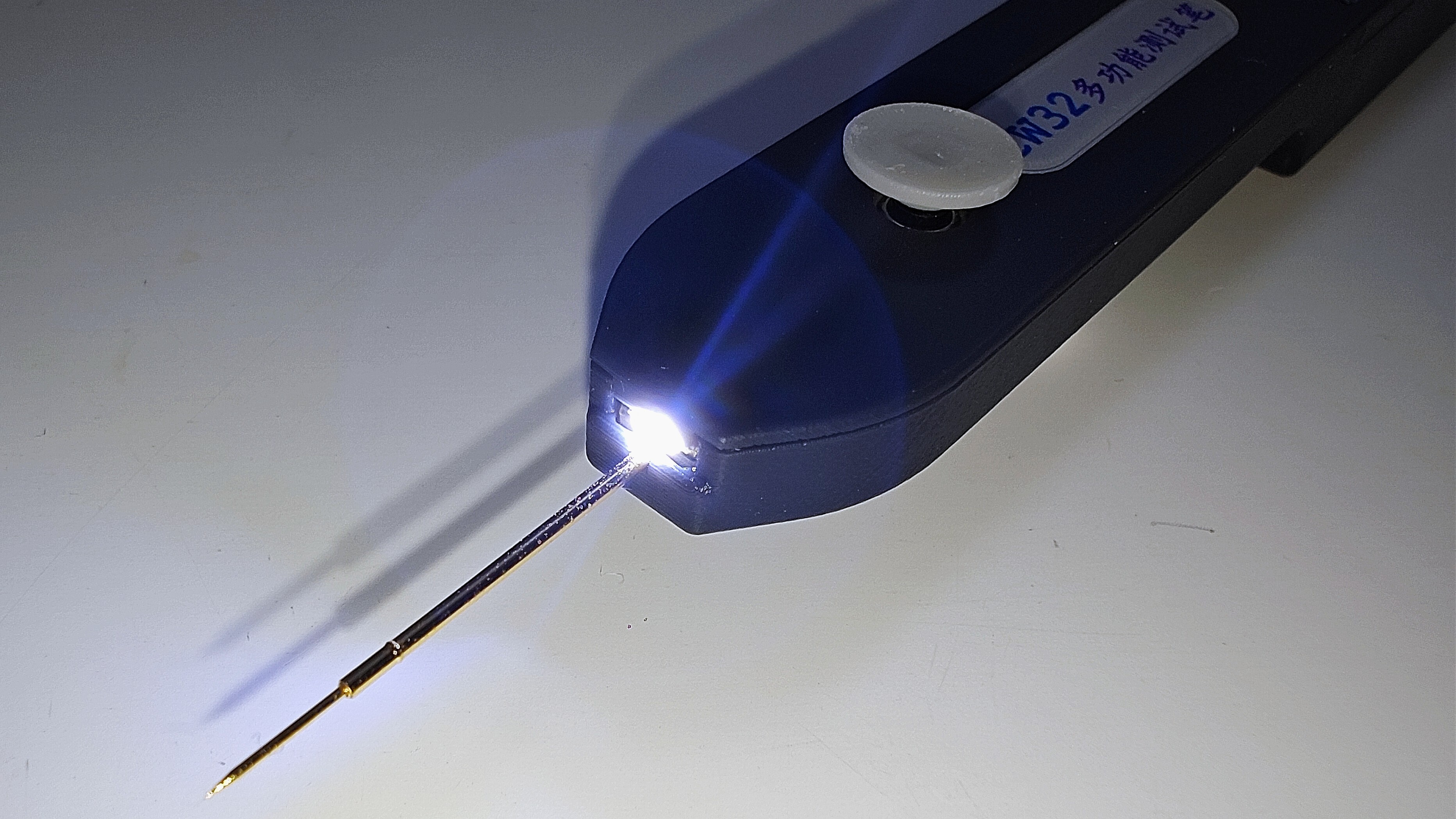 还有一颗侧贴的LED作为笔尖照明灯,方便在机壳内部等较为昏暗的场景进行测试,可以根据需要更换限流电阻来设定自己需要的亮度。