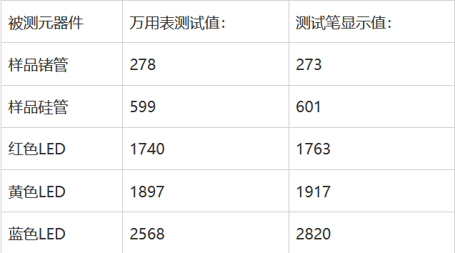 该模式直接使用测试笔测试二极管导通电压与万用表测试值进行对比: