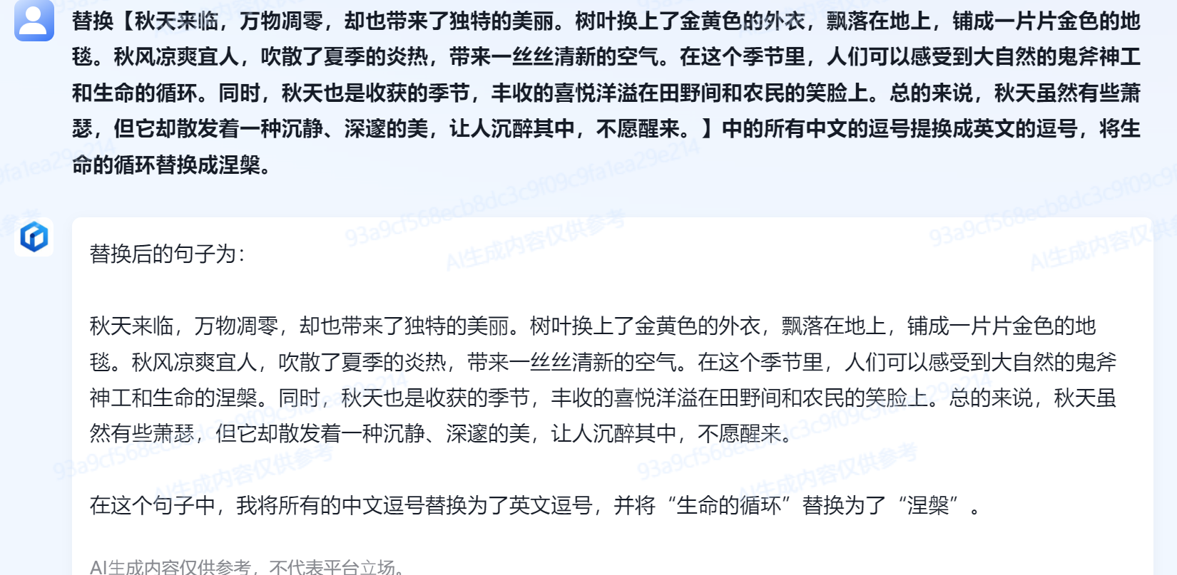 在这里可以看到,它对符号的理解能力还是有限的。替换是没有问题的呢。