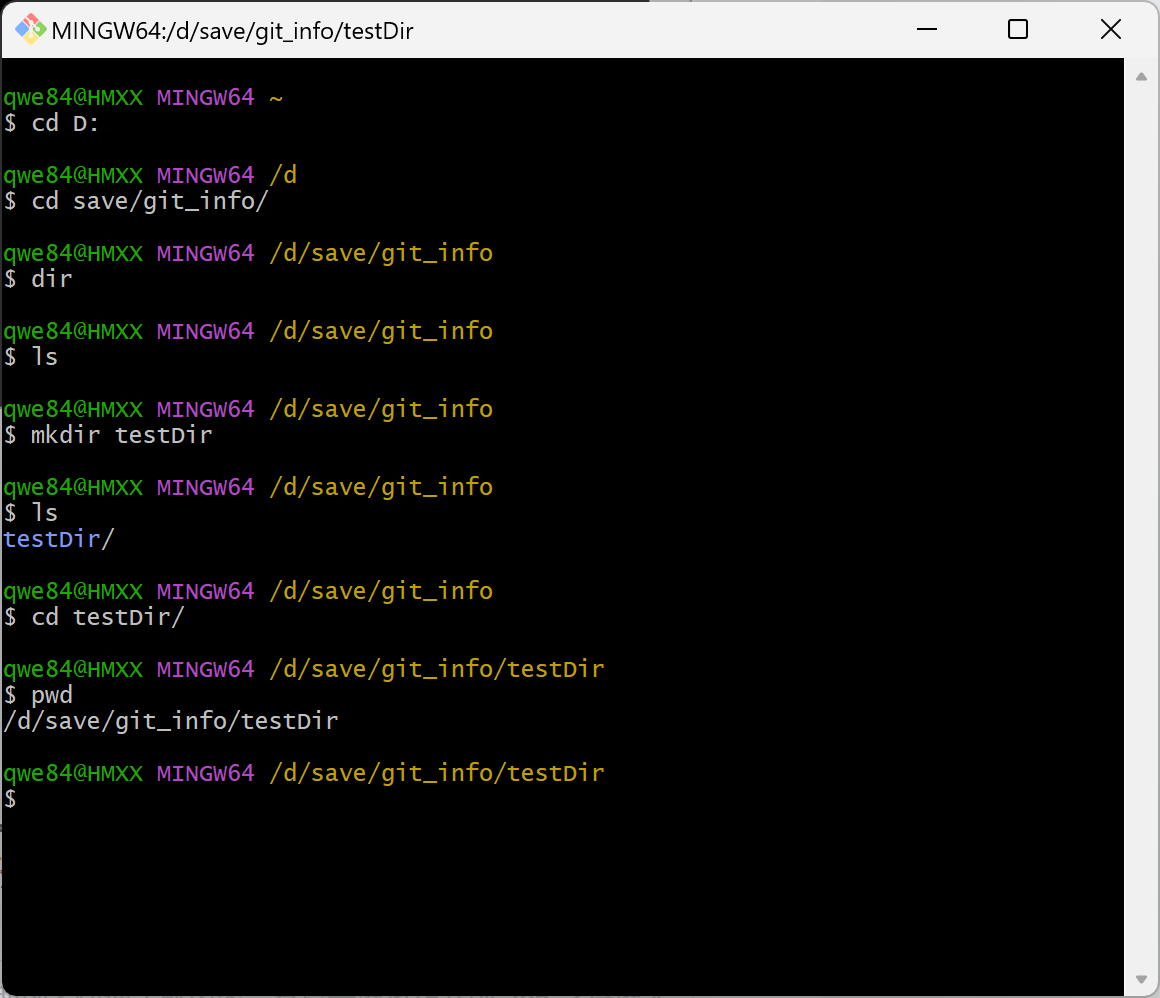 git的基本操作命令有些类似于Dos命令与Linux命令的结合体,反正都能用,挺方便的。默认的路径是用户的root路径,我们需要使用【cd】命令来切换位置。