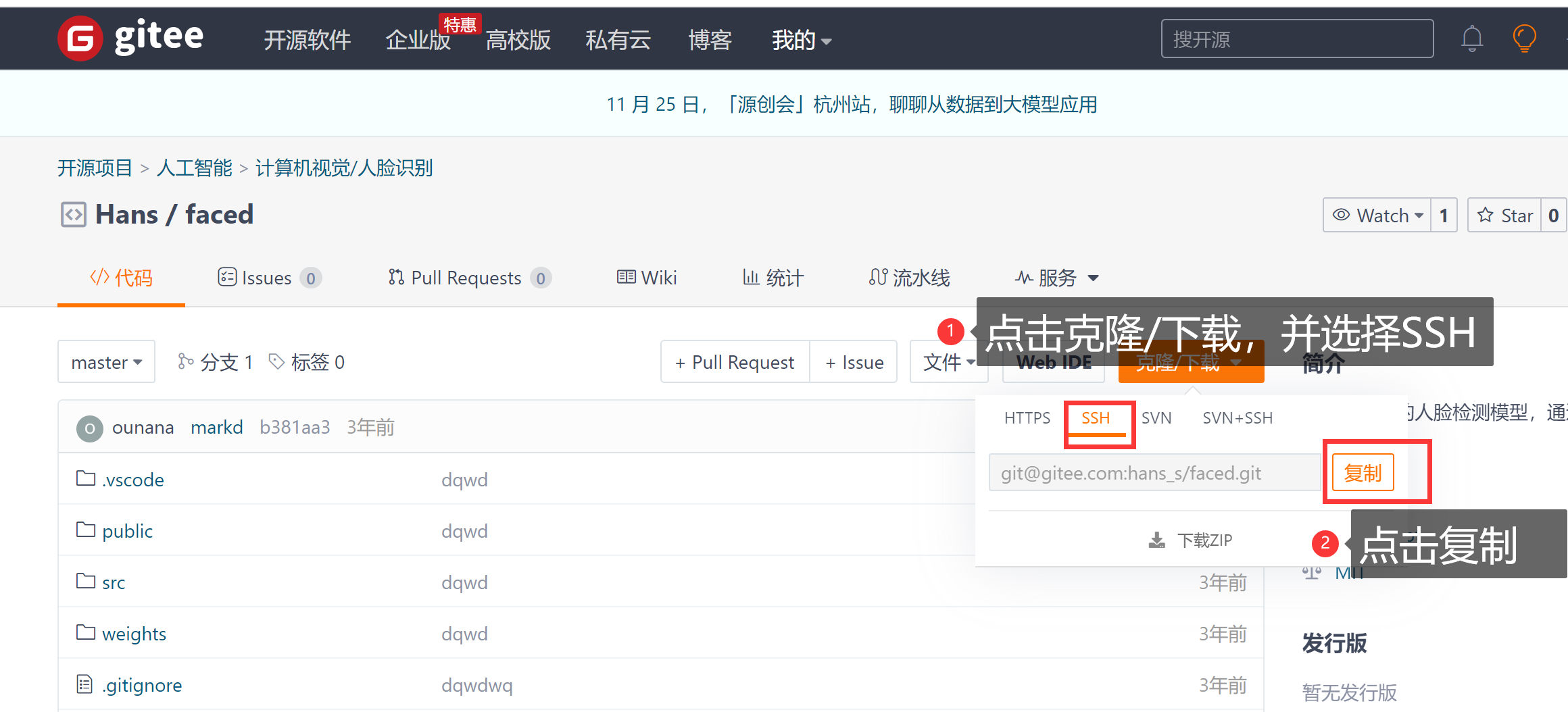 这里测试用的是国内的gitee,用法都类似没啥区别。
