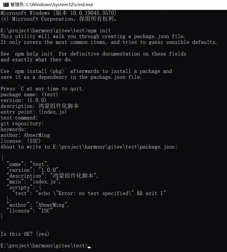 nodeJs环境,在安装DevEco Studio的时候就已经配置完成,检验是否安装,可以在命令行中执行如下命令: