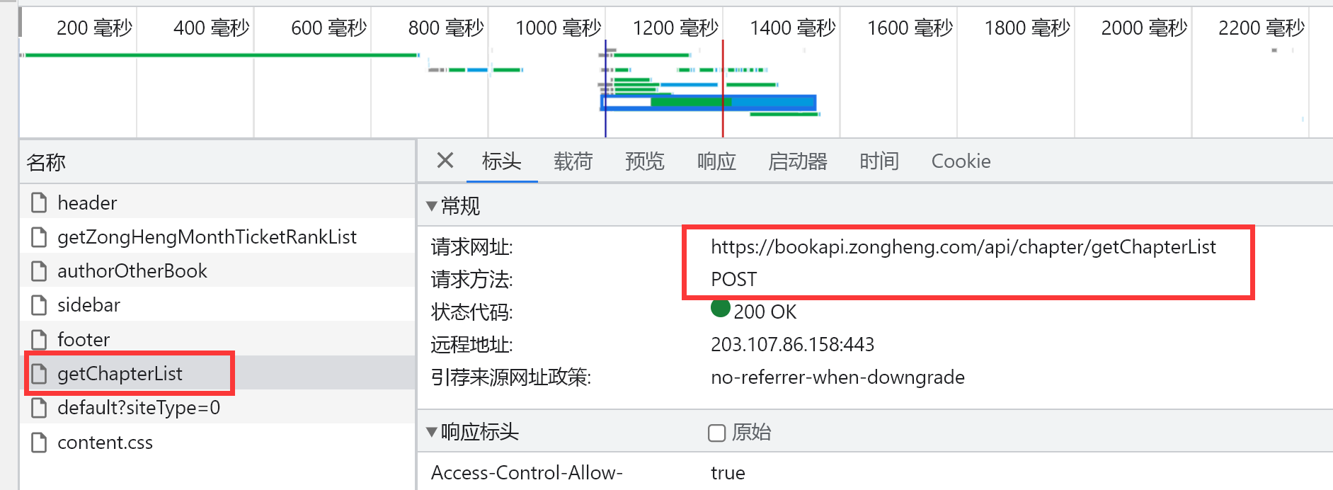 请求的api地址可以看到,访问的方法是:POST,我们需要单独的加上参数与请求头就能访问了。