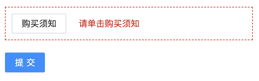 "阅读购买须知"的模块主要包括两部分内容:购买须知按钮和提示文案。