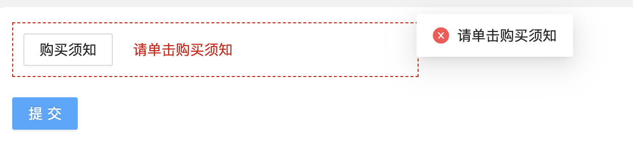 1、在购买页面引入组件,并通过 callback 函数设置"阅读状态"值。并在提交操作中加入校验。