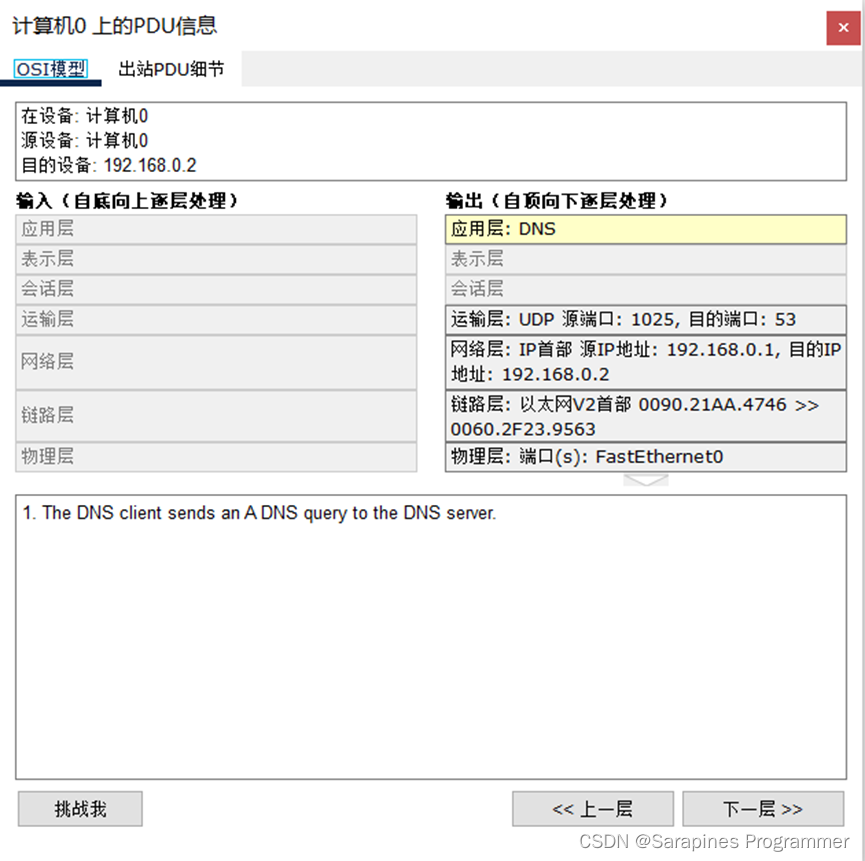 最终由DNS服务器发送数据包给到PC0,返回的PDU信息: