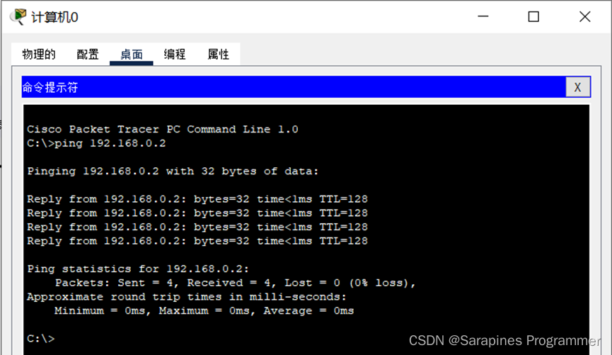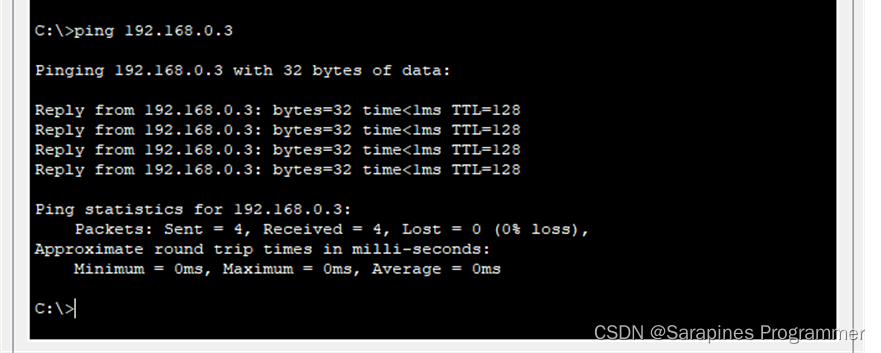 分析发现主机0收到了来自192.168.0.3的响应,这表明PC0与Web服务器之间是联通的。