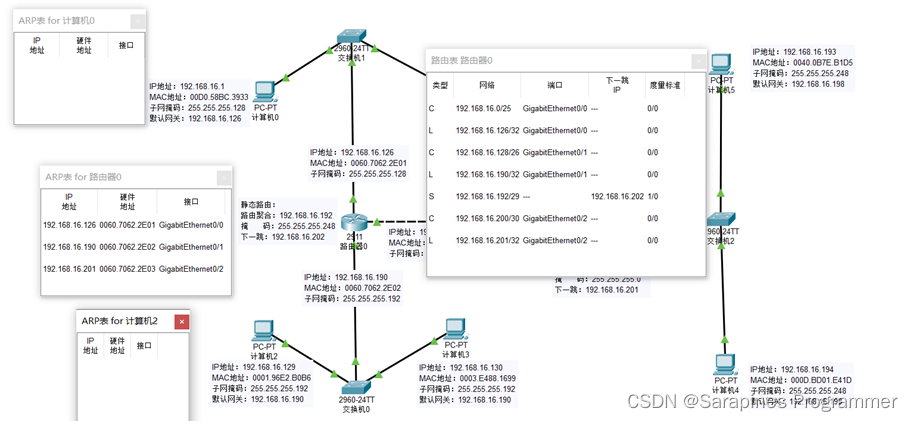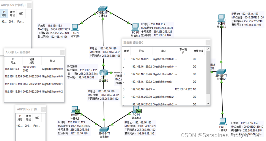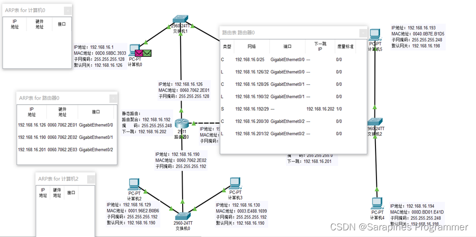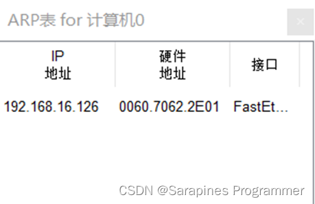 (3)step3 验证主机间能否进行通信:打开主机0与主机2的ARP表,其中主机0的ARP表: