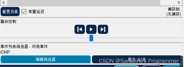 (2)step2 验证同一VLAN的数据传输 :切换至仿真模式,仅显示ICMP协议, 切换模式: