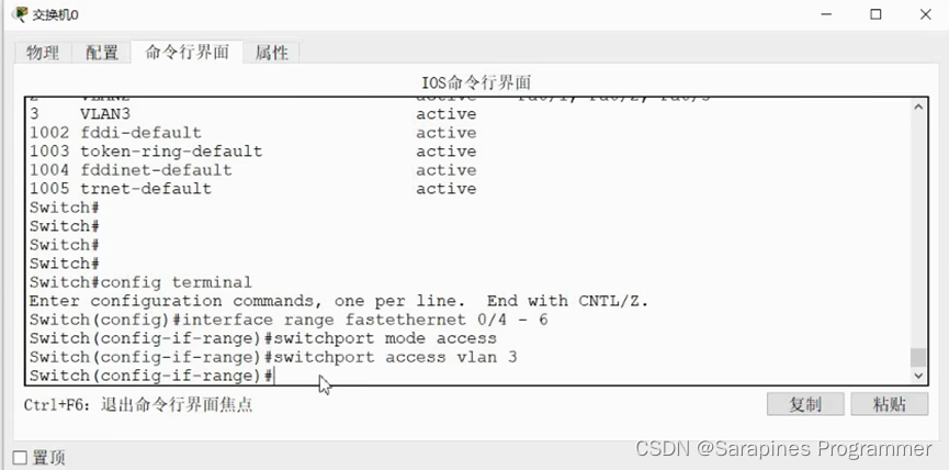将端口4、5、6划分到VLAN3,其交换机的命令行界面: