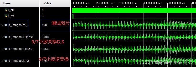 基于FPGA的9/7整数小波变换和逆变换verilog实现,包含testbench
