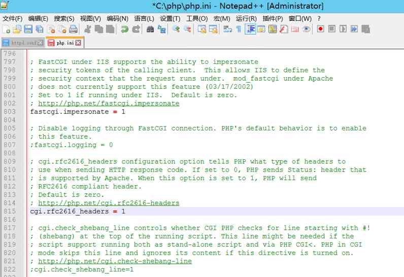 在fastcgi的下面,取消; cgi.rfc2616_headers = 1的注释
