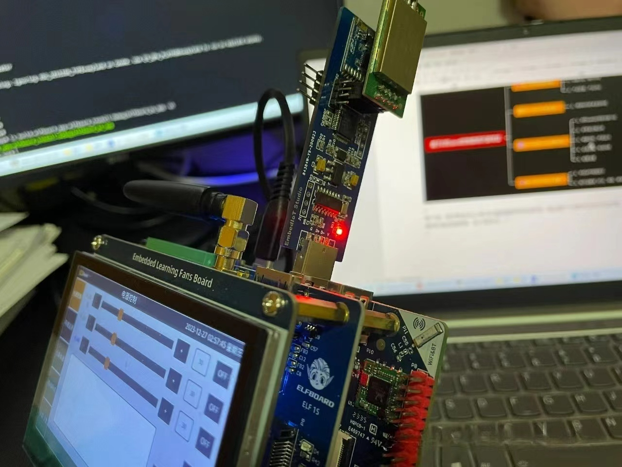 ELF 1S开发板边缘中控还可以把手机APP的控制指令转发到无线端侧设备执行,也可以把环境监测里面的传感器数据,上报到云服务器,然后在手机APP界面进行实时显示。