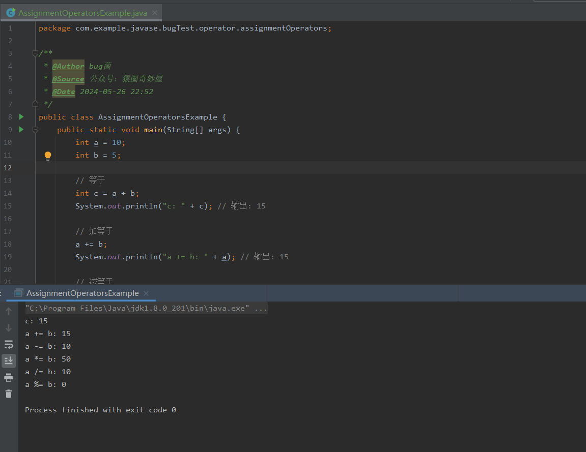 本节介绍了 AssignmentOperatorsExample 类中的方法:通过此方法的类比,以方便同学们学习并深入学习。