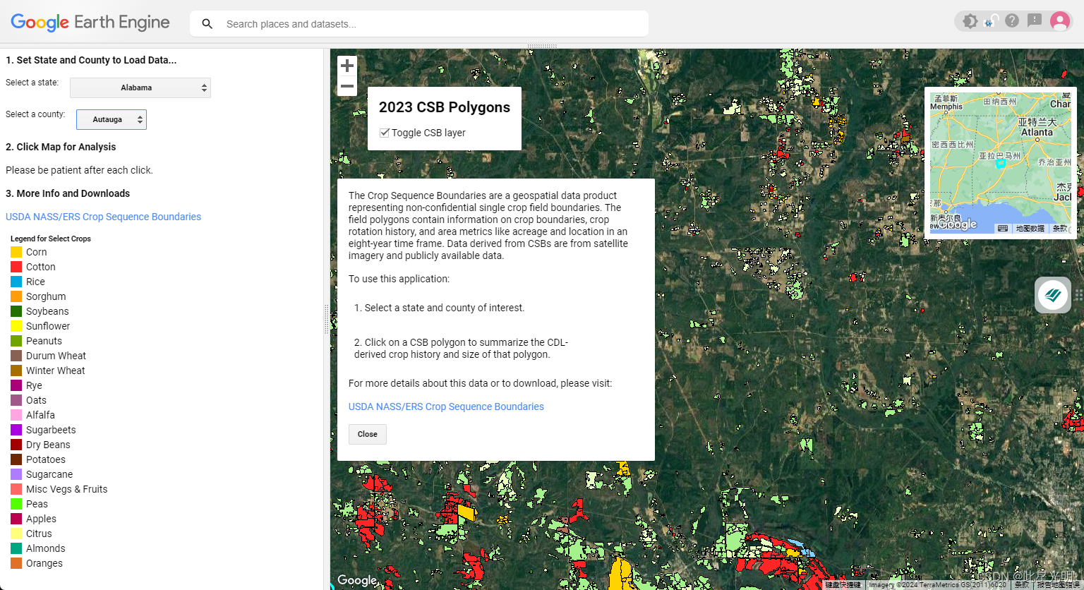 在 GEE 中的编辑: :美国农业部 NASS、美国农业部 ERS、Samapriya Roy