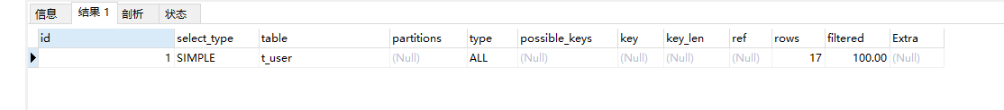 只涉及单表查询所以XEPLAIN输出中只有一条记录。