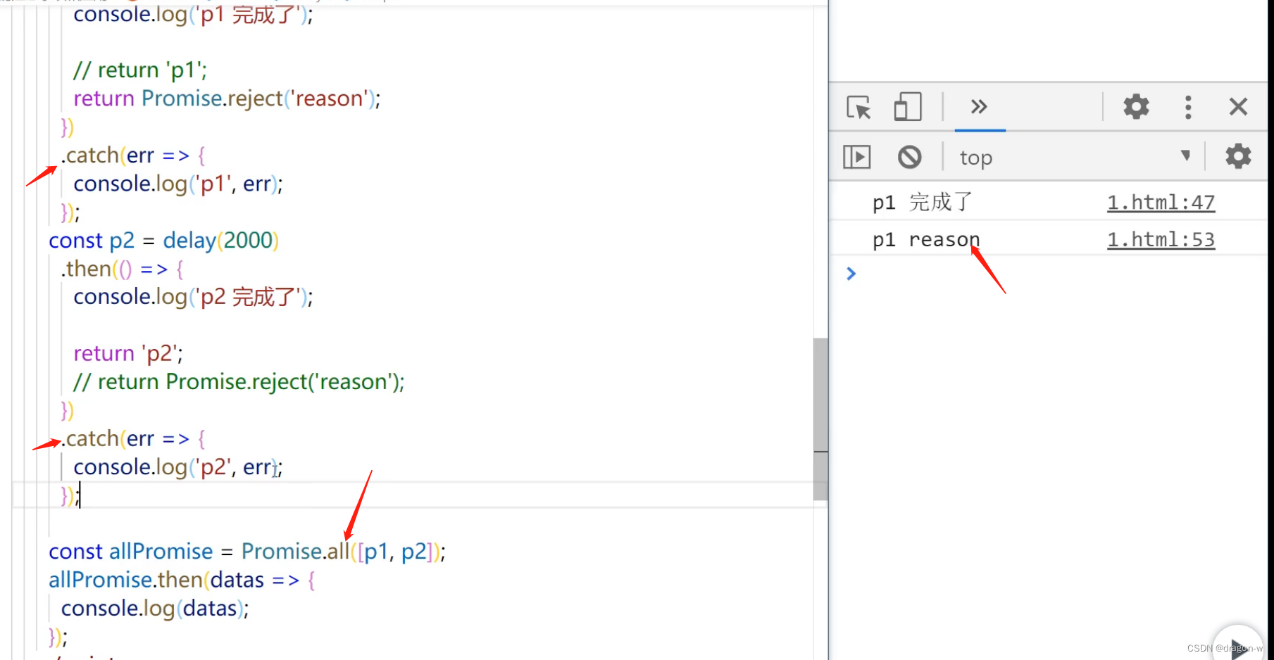 1.调用了resolve或者reject后,后面不推荐在编写别的代码,虽然写了也是会执行的。推荐在调用resolve或reject后,加上return,不在执行他后面的代码。