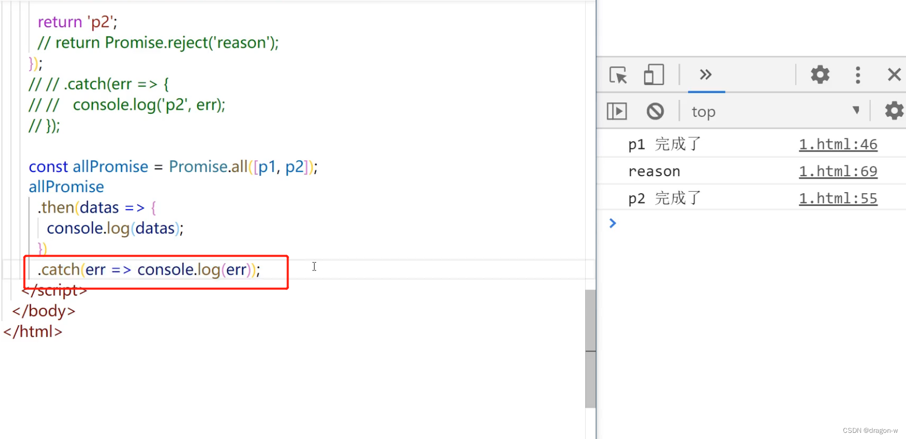2.参数如果不是Promise对象,会将不是Promise对象的转换为Promise对象