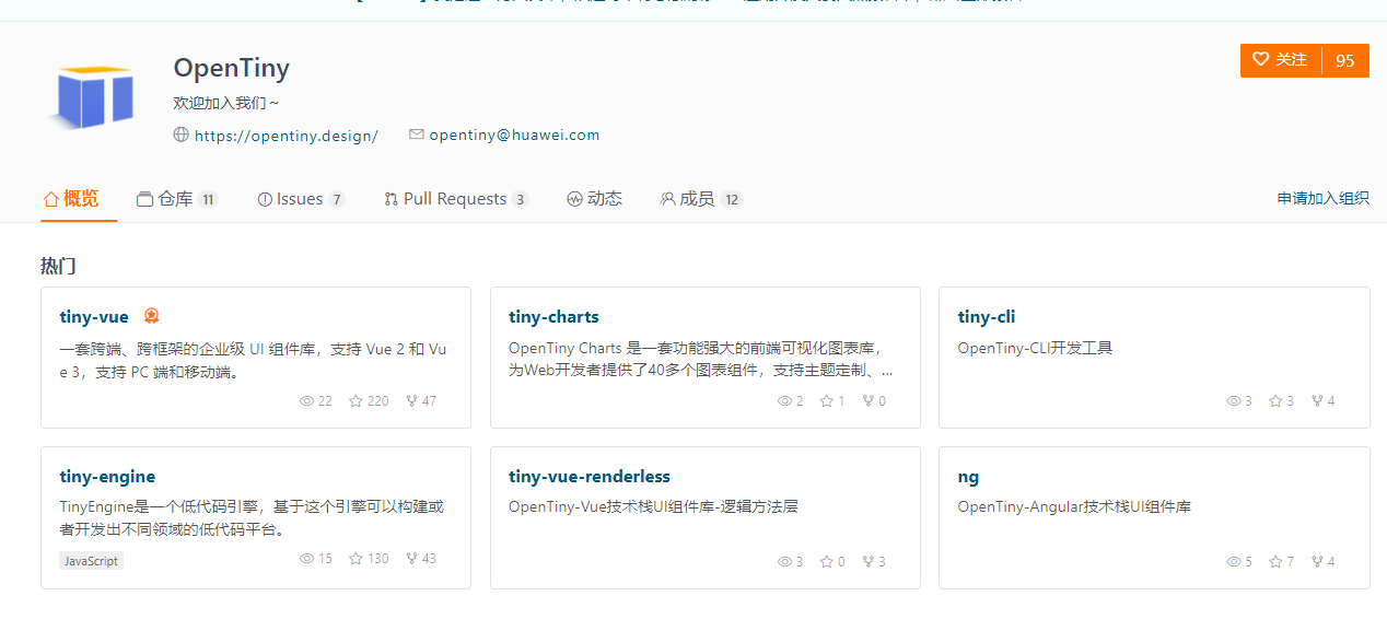 如下是针对该OpenTiny开源的gitee首页,感兴趣的同学赶紧去扒扒吧。