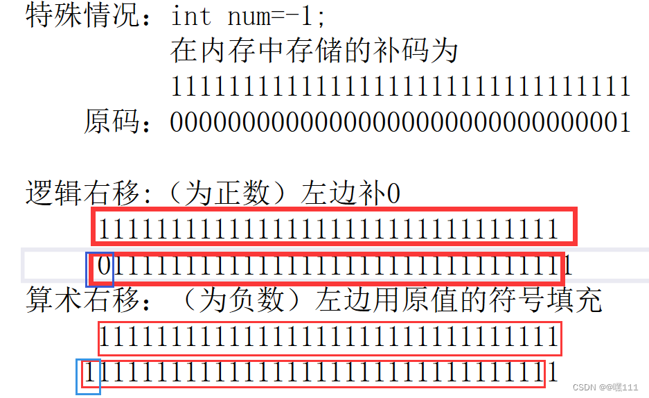 (2).算数移位:左边用原符号位填充,右边丢弃