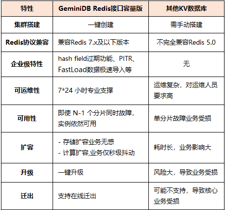 为满足用户需求,华为云推出了GeminiDB容量版,该版本100%兼容Redis协议,具备大容量、低成本、数据高可靠、易于使用和运维等特点,为用户提供了更优质的选择。