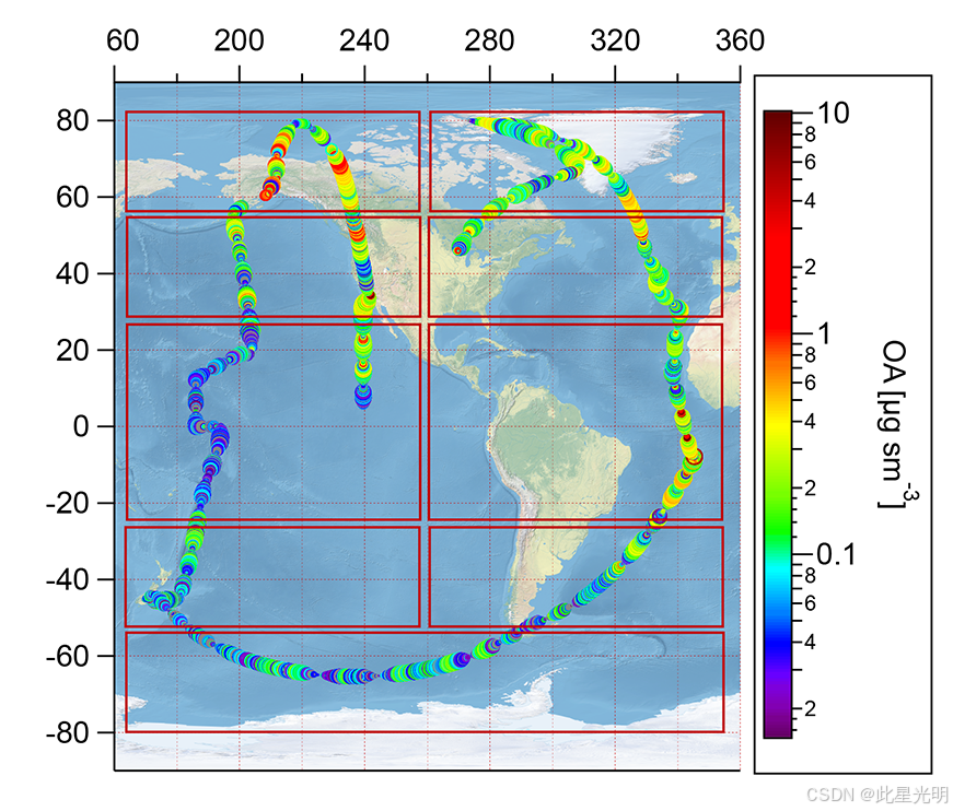 全球部署期间亚微米有机气溶胶(OA)质量浓度的机载原位观测数据
