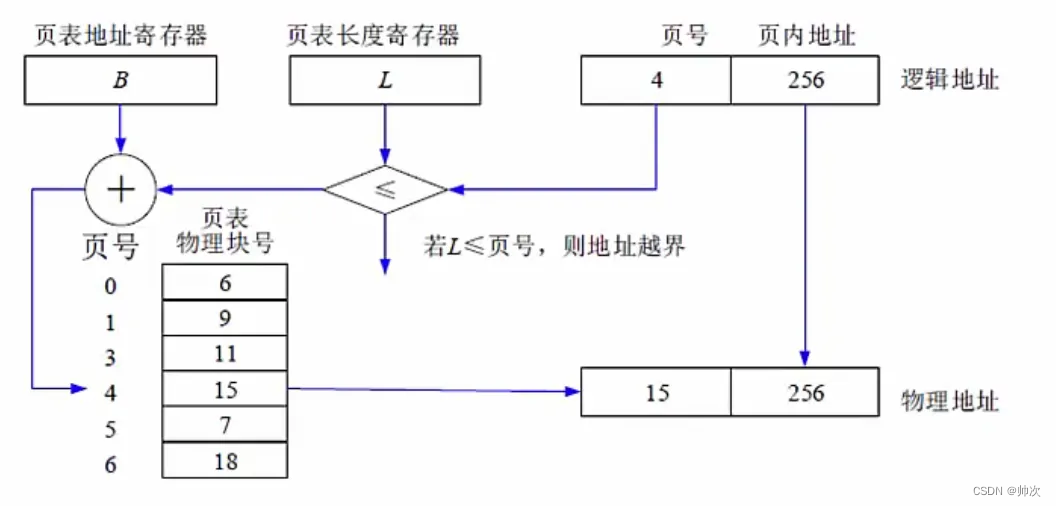 逻辑页分为页号和页内地址,页内地址就是物理偏移地址,而页号与物理块号并非按序对应的,需要查询页表,才能得知页号对应的物理块号,再用物理块号加上偏移地址才得出了真正运行时的物理地址。