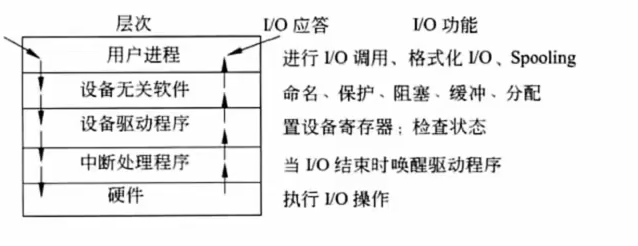 I/O设备管理软件的所有层次及每一层功能如下图: