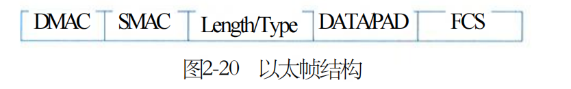 上图依次为:目的MAC地址、源MAC地址、长度/类型、数据填充、校验。