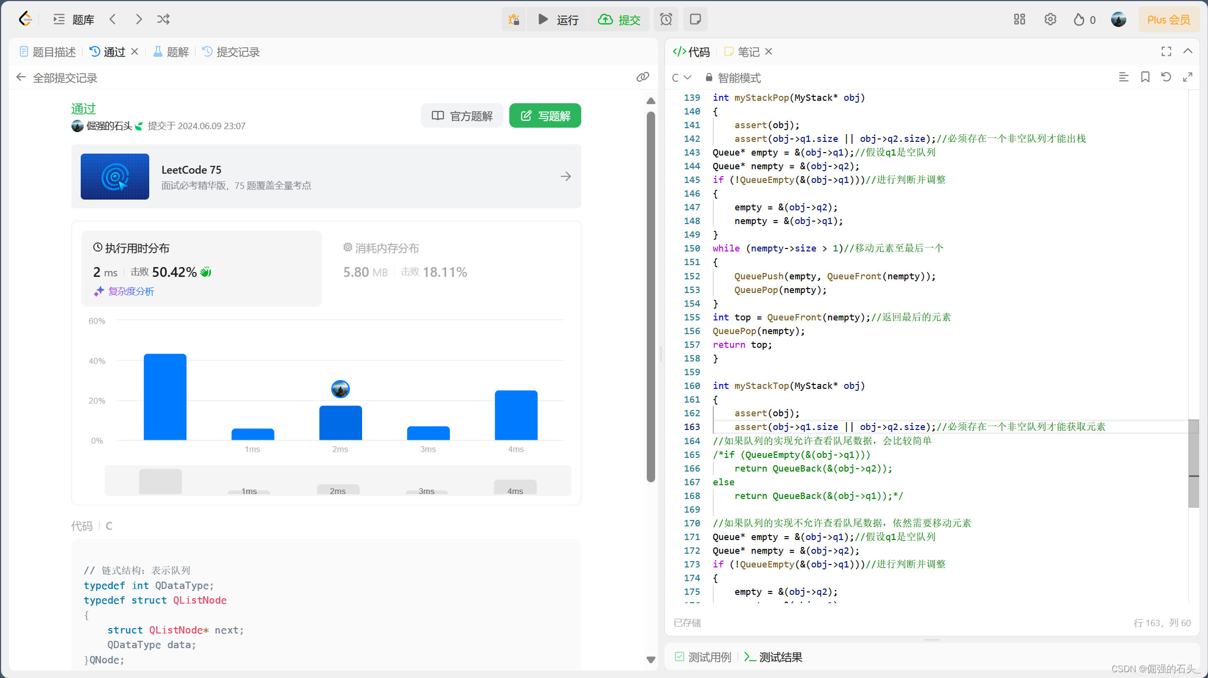 使用两个队列(Queue)实现栈(Stack)的功能是一种常见的数据结构练习。栈是一种后进先出(LIFO)的数据结构,而队列则是先进先出(FIFO)的。解题的关键就在于如何通过巧妙地使用两个队列的先进先出,来可以模拟栈的后进先出行为。