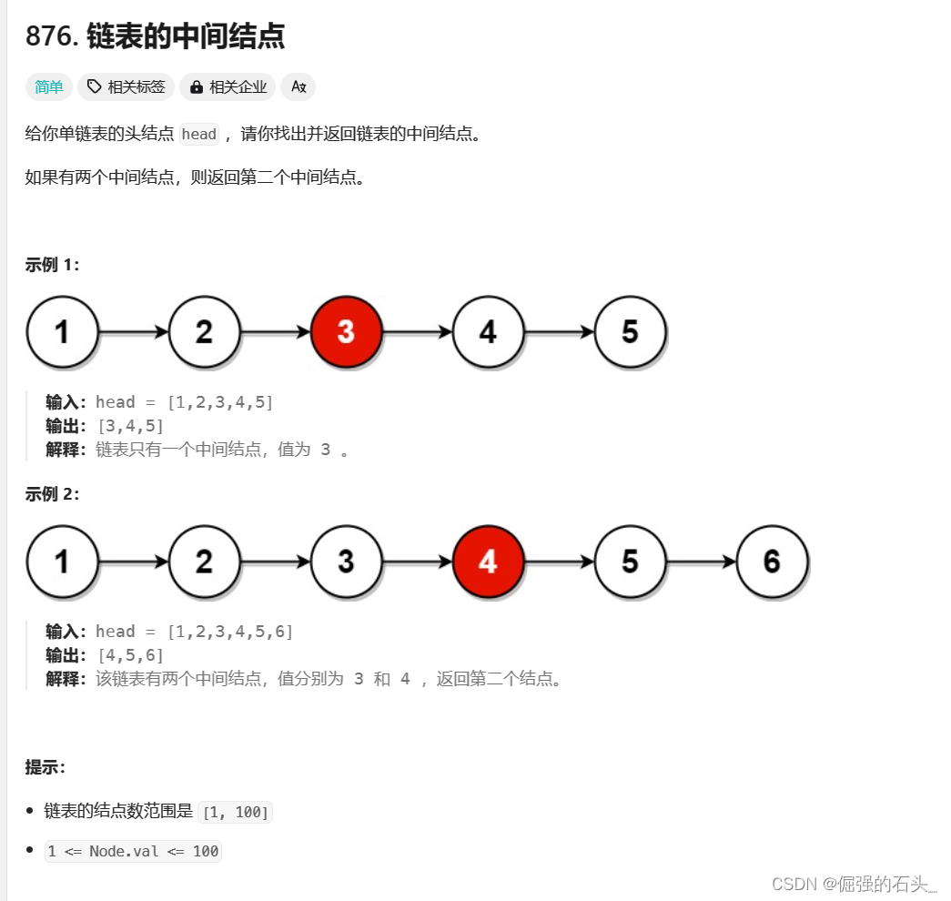 - 当链表有偶数个节点时,得到的是中间第二个节点的位置