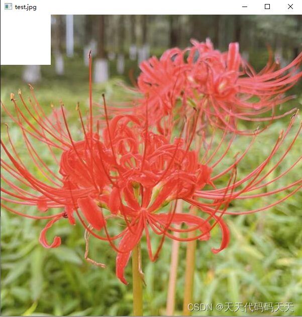 上面我们读取了坐标(599, 589)上像素的BGR值,即(35,155,131)。现在将像素的BGR值由原来的(35,155,131)修改为(255,255,255),代码如下: