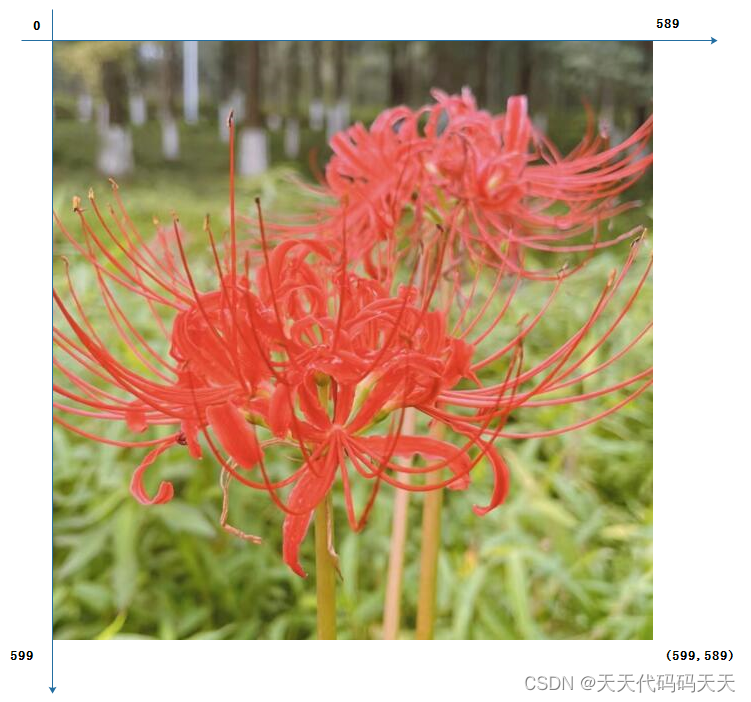 上图中,在水平方向上的像素个数是590个,与其对应的是X轴的取值范围,即0~589;同理,在垂直方向上的像素个数是600个,与其对应的Y轴的取值范围,即0~599。