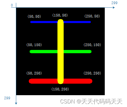 Cv2.Line(canvas, new Point(150, 50), new Point(150, 250), new Scalar(0, 255, 255), 20);Cv2.ImShow("lines", canvas);