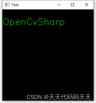 Cv2.PutText(canvas, "OpenCvSharp", new Point(0, 50), HersheyFonts.Italic, 1, new Scalar(0,255,0), 1, LineTypes.AntiAlias, false);