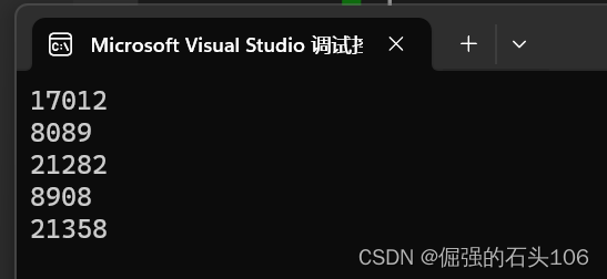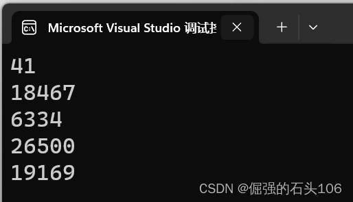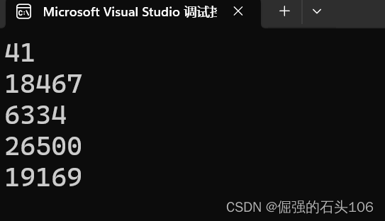 可以看到,单次运行中多次调用rand函数产生的随机数都是不同的,并且多次执行程序得到的随机数也是完全不同的,到此,已经实现了一定意义上的随机数