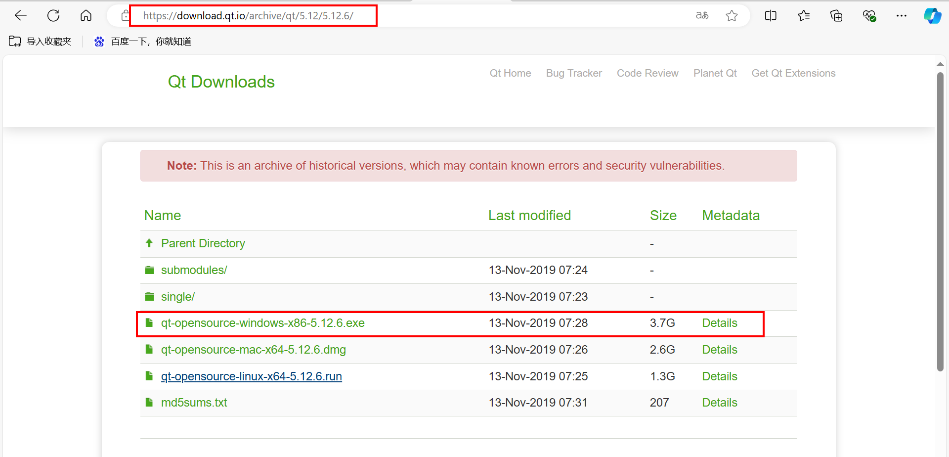 QT5.12.6的下载地址:https://download.qt.io/archive/qt/5.12/5.12.6