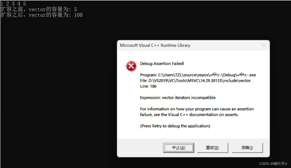 1. 会引起其底层空间改变的操作,都有可能是迭代器失效,比如:resize、reverse、insert、assign、push_back等。